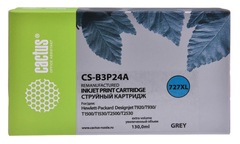 Картридж струйный Cactus CS-B3P24A №727 серый (130мл) для чипом HP DJ T920/T1500